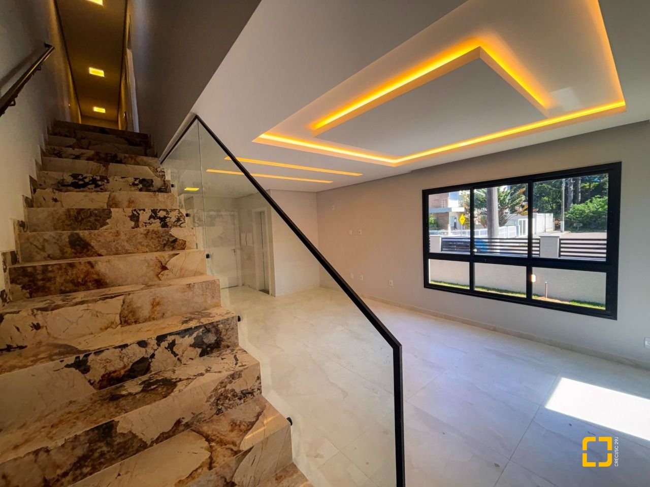 Sobrado individual em pátio, com projeto bem concebido e excelente padrão de construção, localizado em um dos loteamentos mais valorizados do norte da ilha.