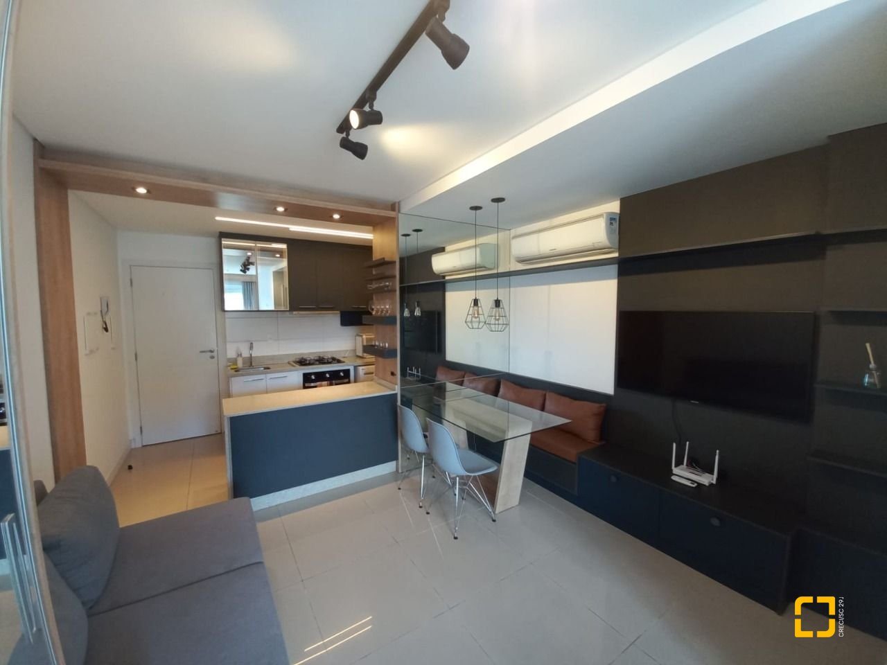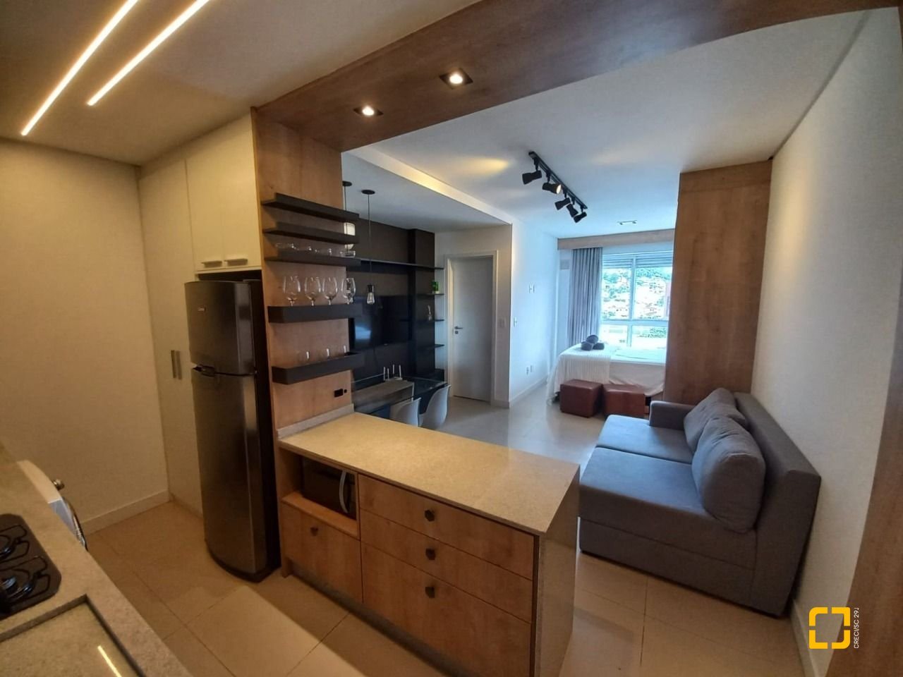 Studio à venda de 32,36 m² privativos, localizado no coração do Centro de Florianópolis. Com um ambiente acolhedor e bem planejado, este imóvel conta com um living iluminado, ar condicionado, móveis planejados, banheiro social e uma cozinha americana que proporciona praticidade e conforto no dia a dia. O teto rebaixado em gesso e o piso porcelanato conferem um toque de sofisticação ao espaço.