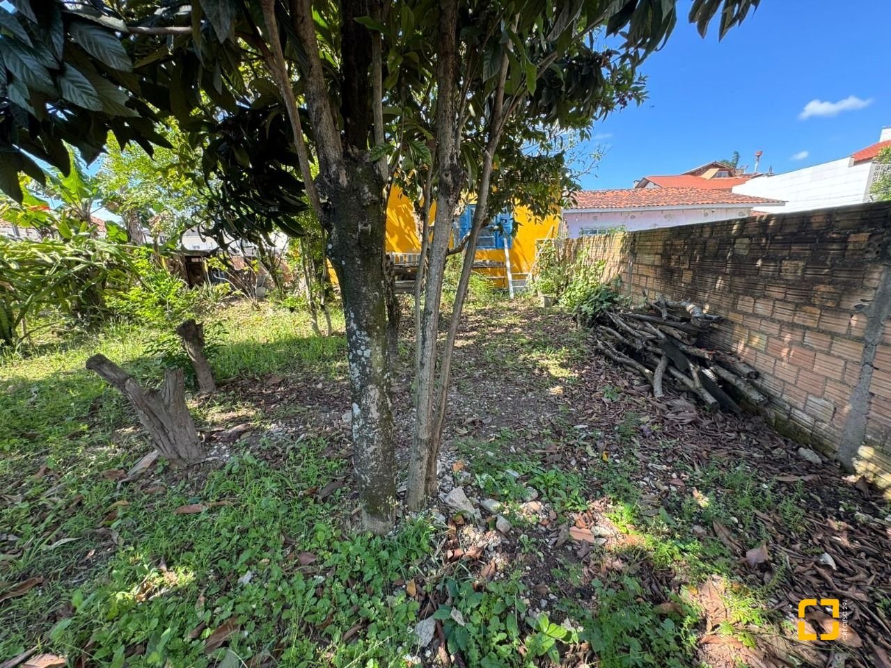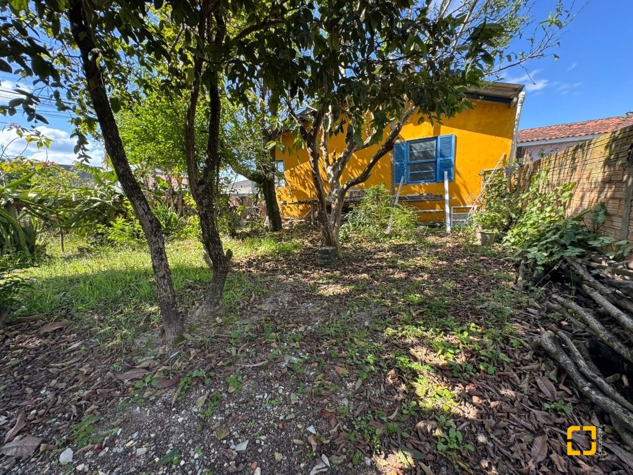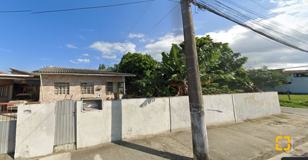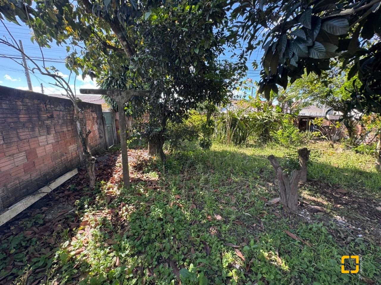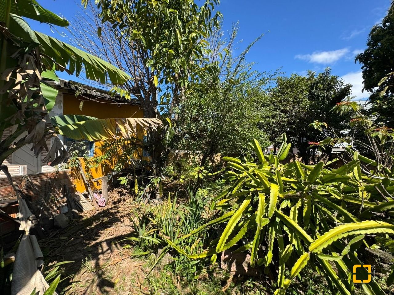 O terreno conta com uma casa antiga em alvenaria atualmente edificada no local.