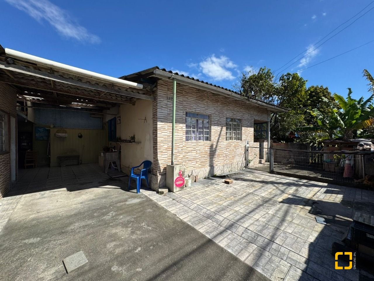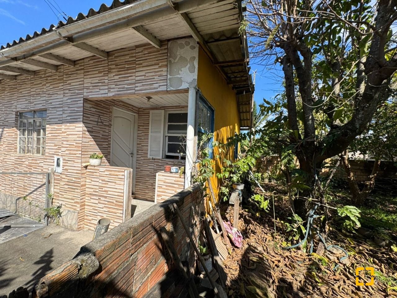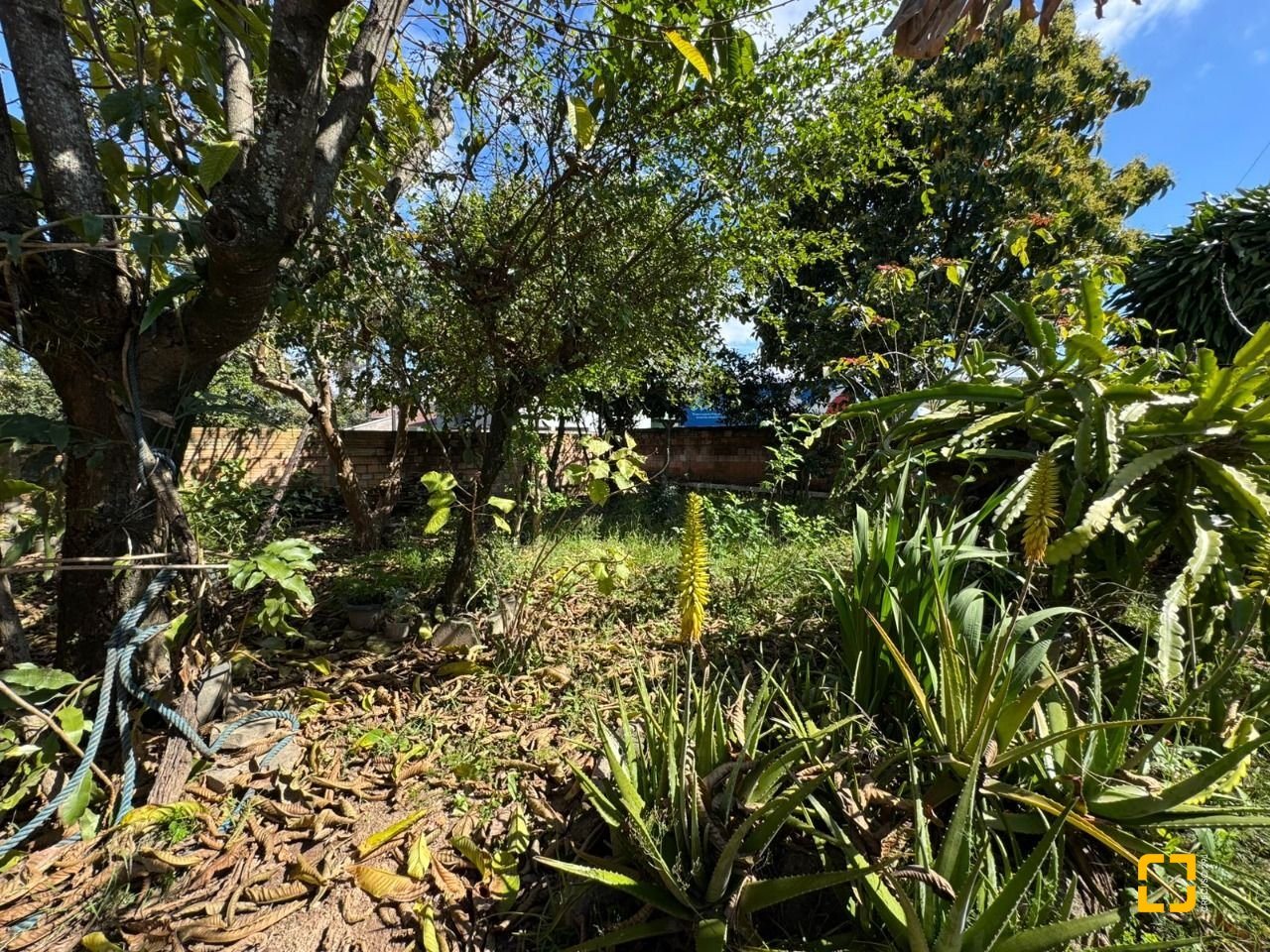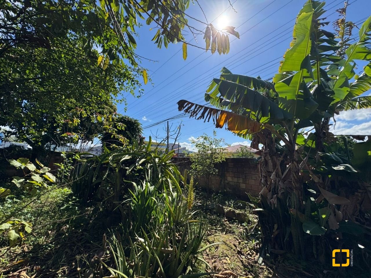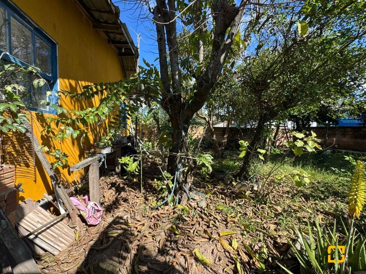 O terreno conta com uma casa antiga em alvenaria atualmente edificada no local.