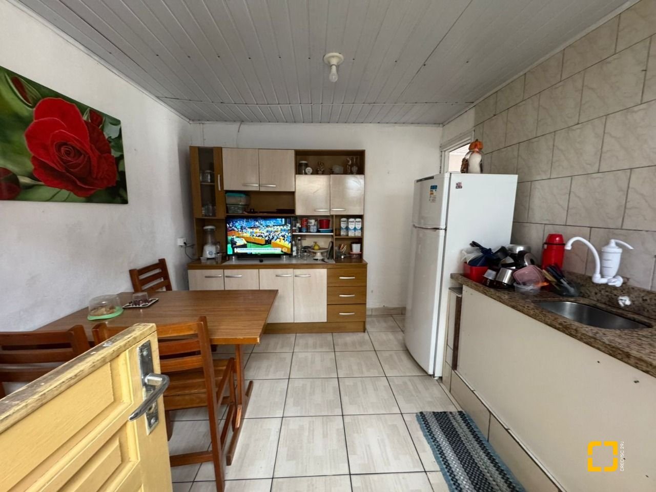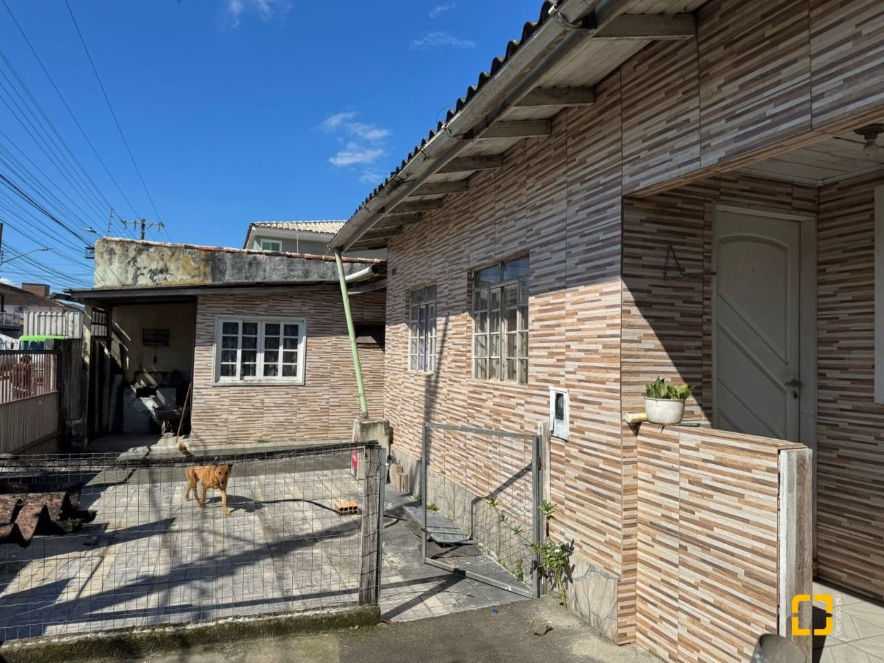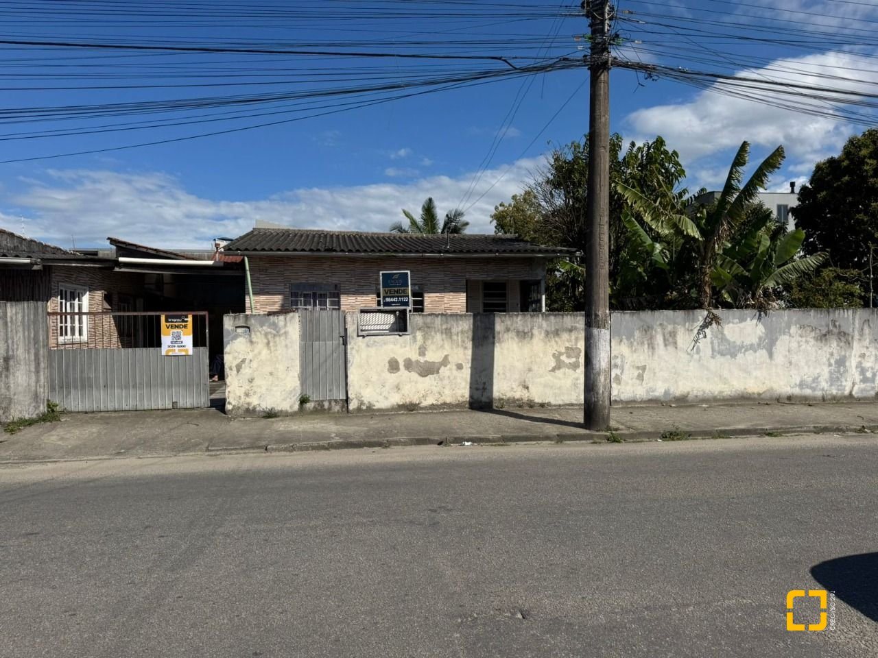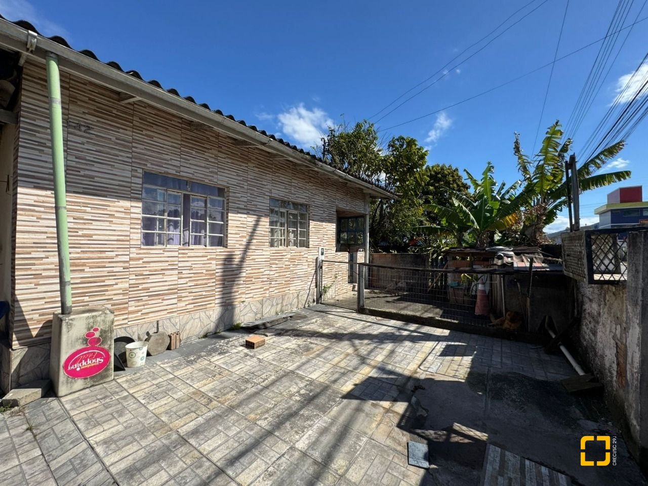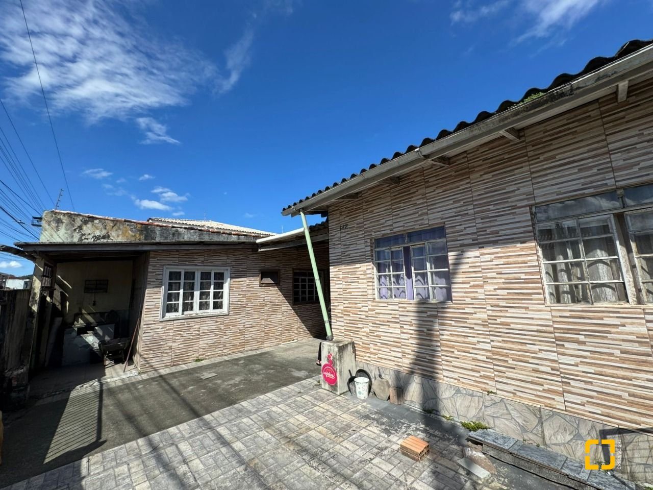 O terreno conta com uma casa antiga em alvenaria atualmente edificada no local.