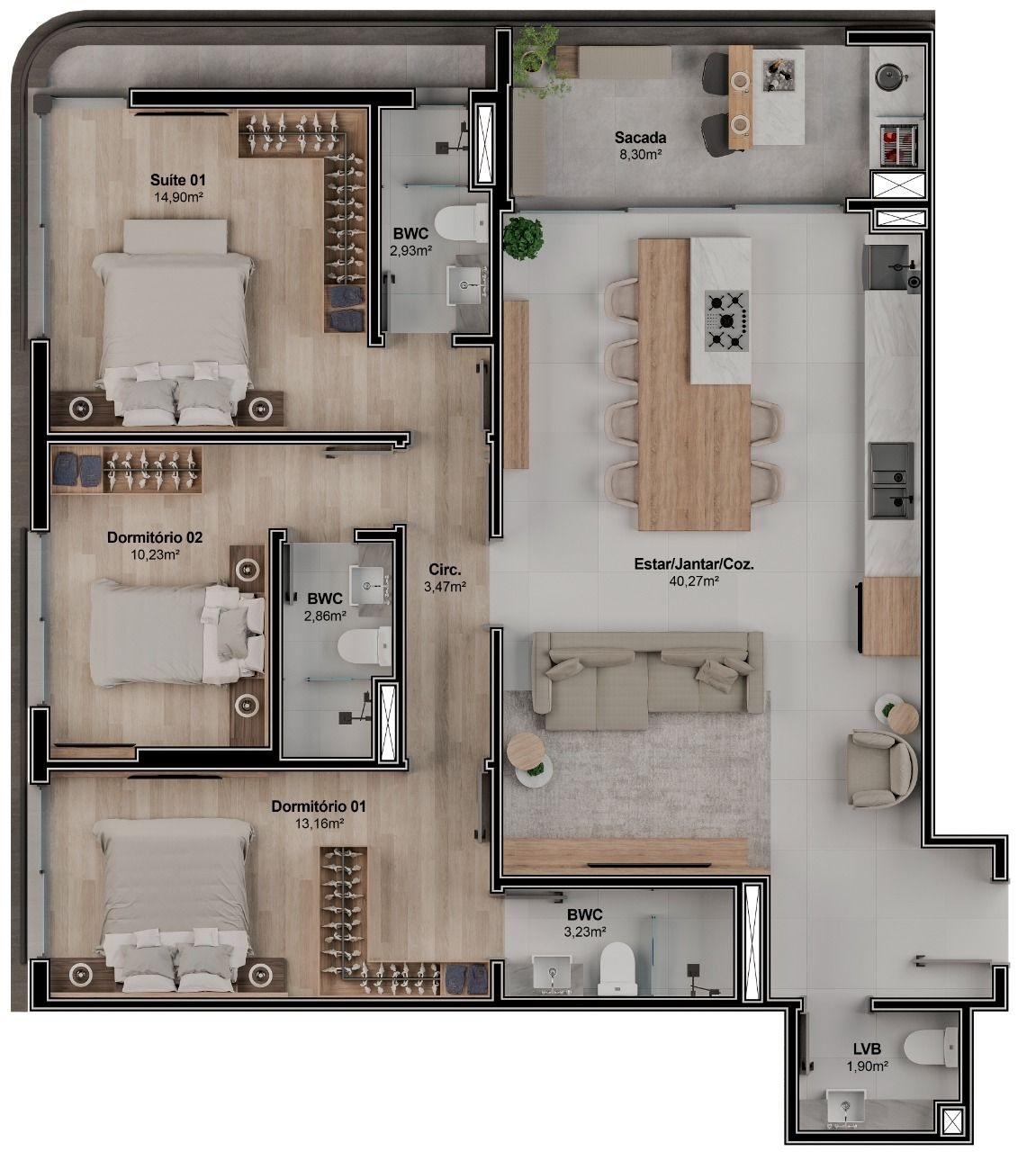 até 3 quartos